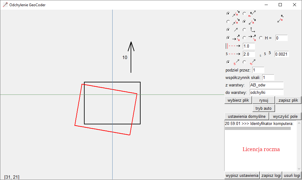 Roczna licencja na program Odchylenie GeoCoder, który umożliwia manualne oraz półautomatyczne wstawienie odchyłek między pomiarem, a projektem. Pełny opis znajduje się pod linkiem opis programu.